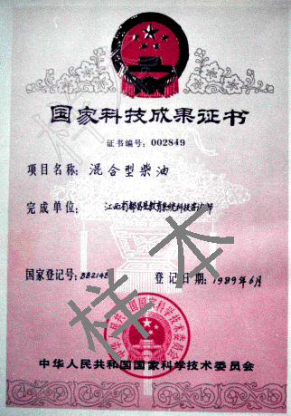 混合型柴油国家科技成果证书